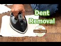 - Place the damp cloth over the dent and use the iron to apply heat. The heat will cause the wood to expand, which will help the dent pop back up.